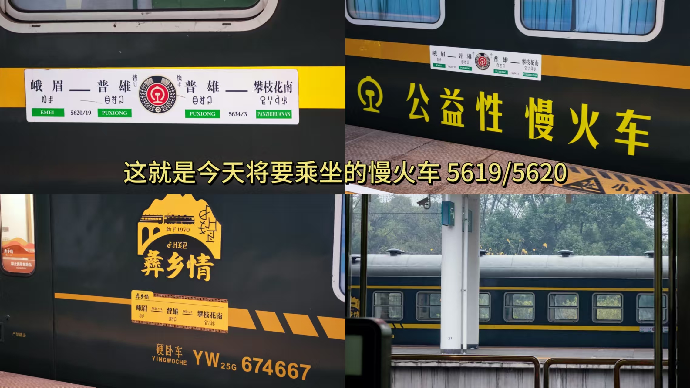 哇塞!刚迈出车门,目光瞬间被稳稳停在对面的成昆慢火车主题车厢牢牢吸引。嘿,缘分使然,原来今天这趟5619次旅程,就由它来全程领航。