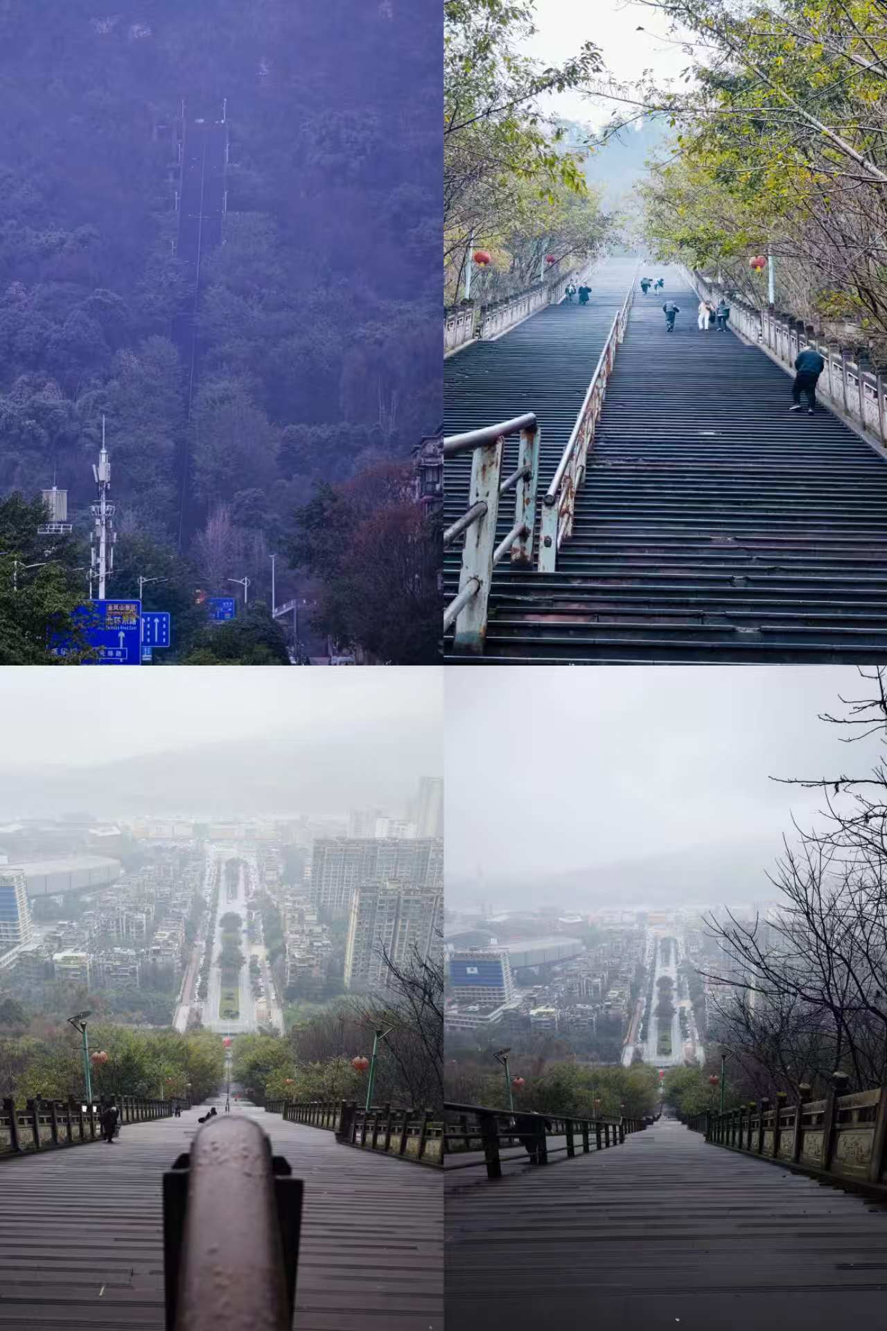 金凤山天梯以749级混凝土台阶垂直攀升168米的金凤山天梯,以38°仰角贯穿雨城区东北山体,将千年金凤寺的朝圣古道转化为观景台的现代山体设施。